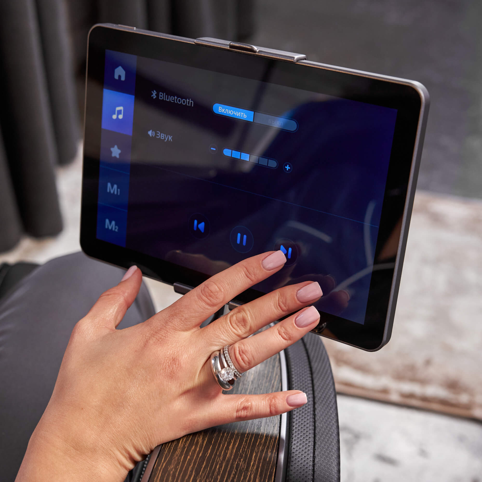- Управляйте с легкостью! Интуитивно понятный большой пульт управления в виде планшета располагается на подлокотнике. Массажное кресло оснащено поворотным переключателем для управления программами массажа, регулировкой интенсивности массажа, регулировкой положения высоты упора для ног, положения упора для ног вперед или назад, высоты спинки кресла, положения роликового массажера для спины. Функция памяти для двух пользователей положения массажера для плеч, интенсивности массажа, положение массажера для икроножных мышц и прочие данные о режиме массажа. При необходимости в меню можно настроить подогрев, роликовые массажеры, яркость экрана, время, язык и отображение состояния. Каждый человек уникален и кресло это понимает! С помощью интуитивно понятного пульта управления вы сможете легко настраивать интенсивность массажа, выбирать зоны воздействия и даже сохранять любимые настройки для 2-х пользователей.